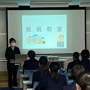 令和4年2月9日(水)に,中国税理士会呉支部税理士,松尾哲也氏と松本美幸氏を講師にお招きし,高校3年生を対象に租税教室を開催しました。「税に関する養育その他知識の普及及び啓発のための活動」を目的に,税について様々なお話をしていただきました。次代を担う生徒たちが税の意義や役割を正しく理解し,社会のあり方を主体的に考えるきっかけになって欲しいと思います。