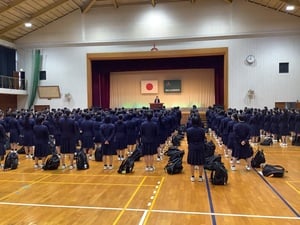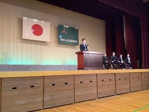一年後の自分をイメージし,自分の輝きをコツコツ磨く一年にしていってほしいこと、18歳成人制が始まり生徒の皆さんにはより一層の正しい自己判断が必要となっていくこと,ウクライナで今大変なことが起こっており是非自分のこととして受けとめ,家族・友人・先生等と語ることを通して自分の考えを持つことが大事であること等のお話をいただきました。