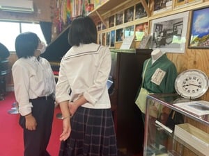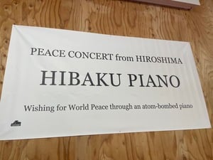 全国で「被爆ピアノ」を使用して「被爆(ひろしま原爆)ピアノ、平和コンサート」を開催していることで知られる矢川光則さんから、説明を受ける生徒。