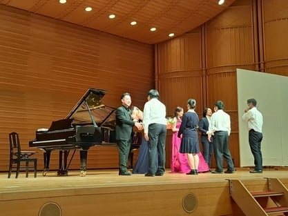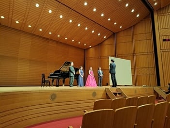 6月1日(木)午後、呉信用金庫ホールにて清水ケ丘高校及び呉青山中学・高等学校合同で芸術鑑賞会を実施しました。今年はオペラ鑑賞を行い、東京より4名の出演者に来て頂き、プロの生演奏を聴きました。初心者でも理解することができるように、丁寧な解説やスクリーンに日本語訳を映し出すなど工夫をしていただき、オペラを楽しむことができました。後半では生徒のオペラ体験を企画していただき、代表生徒が舞台上でオペラの一節を歌いました。最後にそれぞれの校歌の生歌を聴き、楽しい時間を過ごすことができました。オペラを見聞きしたことがある生徒も少数であり、オペラという芸術に触れることができた貴重な経験を持つことができました。