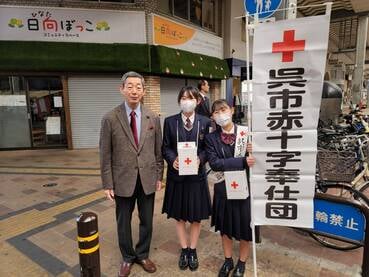 学校生活 · 2023/12/02 令和5年度「年末愛の運動」街頭募金活動 12月2日(土)に呉市女性連合会、呉市赤十字奉仕団の街頭募金活動に、清水ケ丘高校より生徒会執行部7名、一般生徒1名が参加しました。呉市長の新原さんと一緒に募金活動ができ、生徒も大変喜んでいました。また、通行される方々が募金してくださり、中には「頑張ってください」と声をかけて下さる人もおられ、より一層頑張って活動ができました。 tagPlaceholderカテゴリ: life