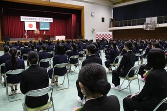 卒業式・修了式には多くの保護者の方々にご出席いただき、生徒たちの凛とした姿を見ていただけました。出席された方々より、「厳粛な式で生徒たちの整然とした姿にとても感動しました。」との感想を聞くことができました。各教室でも保護者の方にここまで育ててもらった感謝を伝える生徒の姿をみることができ、とても感動的でした。皆さん、ご卒業本当におめでとうございます。