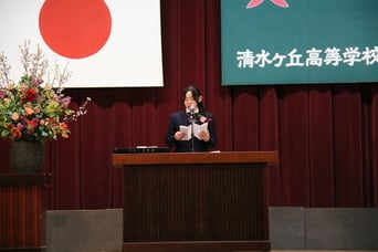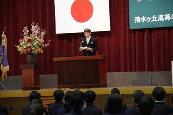 令和7年2月28日(金)、巣立ちの季節を迎え、清水ケ丘高等学校では第七十四回卒業証書授与式ならびに第四回修了証書授与式が行われました。第七十四回卒業生及び第四回修了生は、はじめはコロナ禍で入学し、様々な制約のある学校生活を余儀なくされました。しかしその後、新型コロナウイルスが第5類感染症へと位置づけられ、制約が少しずつ解除され、みんなで活動を行える学校生活を経験することができた学年でした。あらゆる事柄において目まぐるしく変化を伴った学校生活だったと思います。大変だったと思いますが、だからこそ得ることのできた財産は大きかったと思います。この学校生活で学んだことに自信を持って、これからの皆さんの未来がますます輝いていくことを期待しています。看護専攻科の皆さんはそれぞれ看護師として医療施設で従事することになりますが、思いやりのある優しい看護師になっていって下さい。