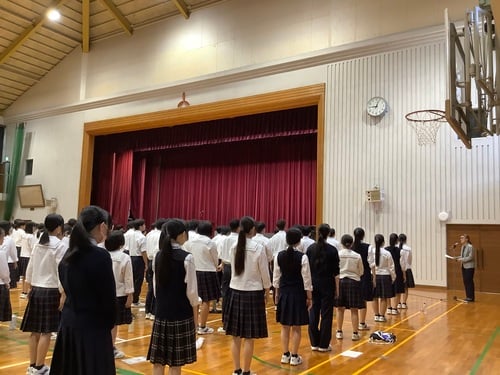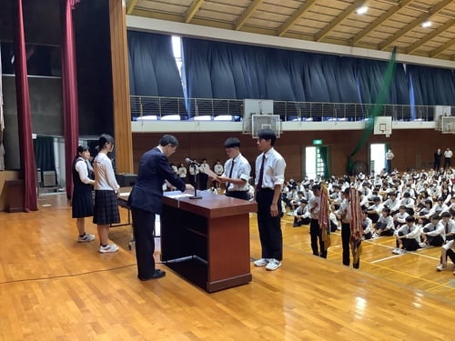 続いて、1学期終業式が行われました。中舛校長先生より、「体と心の健康を大切にすること」、「視野を広げること」について話がありました。校訓である「真・美・愛」の下、しっかりと自らの力を高めていってほしいと思います。