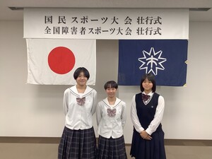 9月25日(木)、呉市役所にて令和7年度「国民スポーツ大会・全国障害者スポーツ大会」へ参加する選手たちの壮行式が開かれました。今年度は清水ケ丘高校より広島県の代表として3名の生徒が出場を決め、壮行式に参加しました。少年女子バスケットボールの選手として永川さん、平川さんが、少年女子ボウリングの選手として中塩さんが代表選手として選出されました。今大会における益々の活躍を教職員一同応援しています。