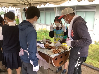 非公開日の31日は、雨天の中での開催でしたが、体育のダンス発表では各グループの練習の成果を出すことができ、見ている生徒もダンスをしている生徒も大変盛り上がりました。クラブの模擬店でも生徒が主体的に動けており、クラブ生徒の頑張りを見ることができました。