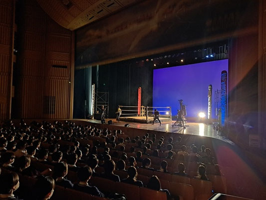 11月6日(木)、清水ヶ丘高校、呉青山中学・高等学校の生徒を対象として、芸術鑑賞会を実施しました。呉信用金庫ホールにて、『EDDIE』~障害をリングに捧げた伝説のボクシングトレーナー~の演劇を鑑賞しました。