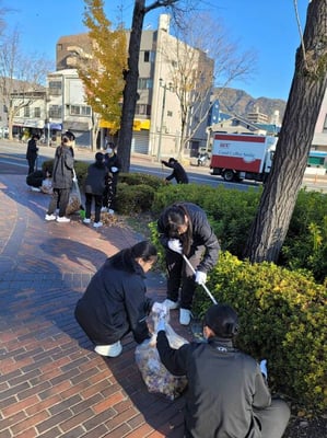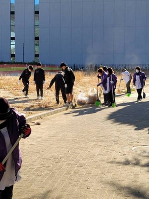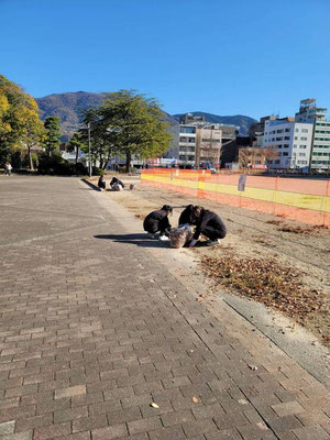 学校生活 · 2025/12/09 年末愛の運動 清掃奉仕活動 12月9日、清水ヶ丘高校1年生は呉市赤十字奉仕団、呉市女性会の方々と清掃ボランティアに参加しました。本日は天候に恵まれ、主に呉市役所付近の公園やレンガ通りを懸命に掃除しているうちに、生徒たちも体が温まったようでした。地域の方々と一緒に作業し、落ち葉や空き缶などで袋がいっぱいになるほどゴミを集め、時には掃除用具の貸し借りをするなど、和やかな雰囲気で清掃を行いました。公園がきれいになってうれしい気持ちを覚えるとともに地域に貢献し、地域の方と交流を深めることができてさわやかな達成感がありました。 tagPlaceholderカテゴリ: life